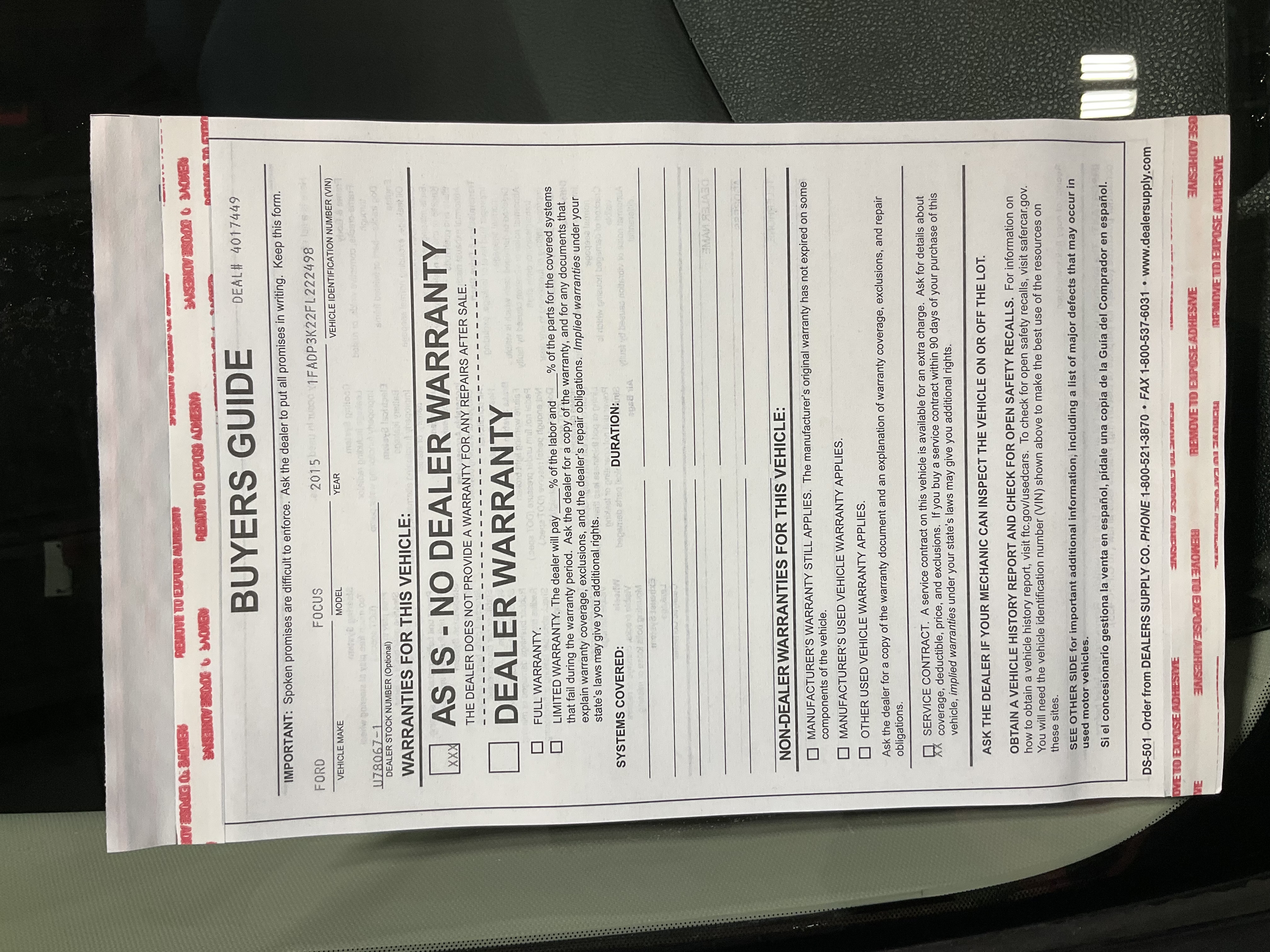 | VIN: | 1FADP3K22FL222498 |